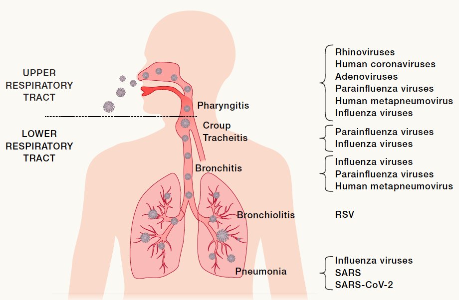 Respiratory viruses affect us throughout our lives, from infancy to old age, causing illnesses ranging from a common cold to severe pneumonia. They belong to several virus families, and although many features of infection with these diverse viruses are shared, some have unique characteristics. This article explains what happens when we are infected by respiratory viruses, including SARS-CoV-2, which causes COVID-19.